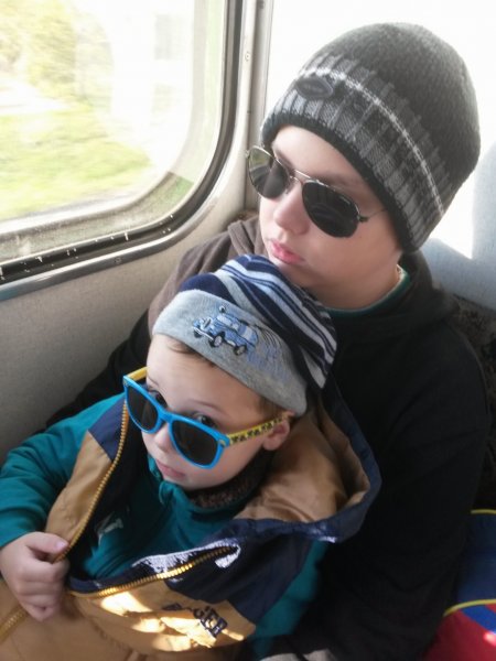 Mivel óránként jár most már a BKV hajó, ezért leraktuk a kocsit a Szent Imre téren, felültünk a hévre – ami 10 perc alatt a Borároson van – és egyből a kikötő felé vettük az irányt, mivel érkezett a járatunk :). A héven a két napszemüveges 🙂 :