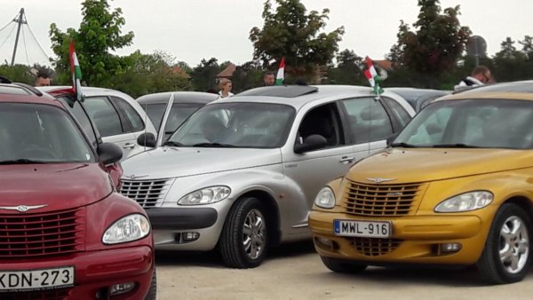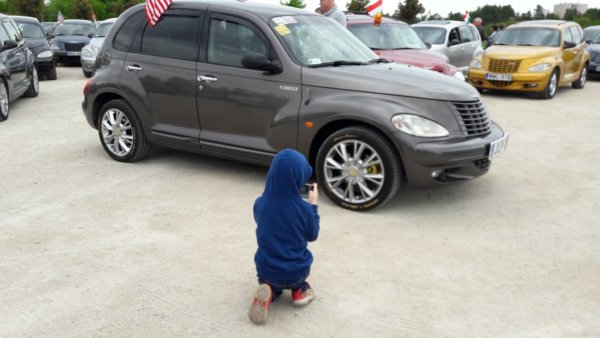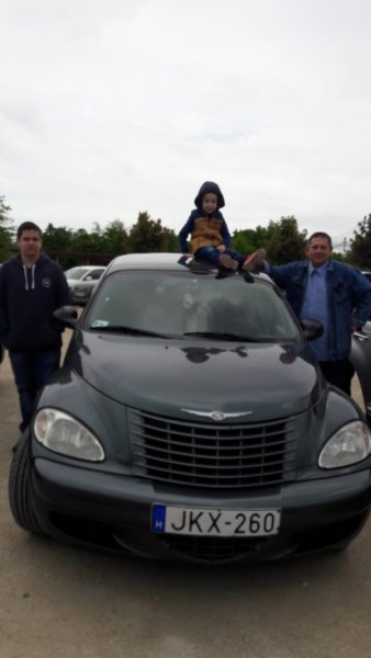 Szombaton Veszprémbe utaztunk és most nem elsősorban a rokonaim miatt, hanem mert a Családfő kocsijának a találkozójára utaztunk. Egy éve már, hogy megvette azt az autót, ami eredetileg az én (egyik) kedvencem 🙂 (ha-ha, így jártam 🙂 ), amibe teljesen belehabarodott és még a FB-os PT Cruiser klubhoz is csatlakozott, ami most hétvégén Veszprémben tartotta a találkozóját. Csak egy kis picike szépséghibája volt a dolognak, 8-ra már illet volna ott lennünk, háát, nem mondom, kicsit elaludtunk, aztán elbizonytalanodtunk, hogy elinduljunk-e egyáltalán, de aztán mégis nekivágtunk és 9-re meg is érkeztünk 🙂 . Jól tettük, mert nem hogy nem késtünk el, még 10-ig maradt ott a társaság, és ami még fontosabb Apuci mellett Toma is lelkes rajongóként szemlélte és fényképezte a szebbnél szebb PT-ket 🙂 . Máté kamaszos visszafogottsággal szemlélődött, nekem meg ugyan a kedvencem ez a típus, de úgy látszik nagyon nőből vagyok, fél óra bőven elég még az ilyen kedvenc autók között is 🙂 (bezzeg ha virágok, könyvek, lakberendezési cuccok lettek volna ott, még most is ott lennék 🙂 ). Toma viszont kiélvezett minden percet, amelyik autóba lehetett beült, nézelődött, fotózott 🙂 .