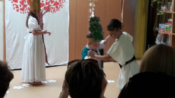 Az azért vicces volt, hogy Toma mint 12 fejű kisebb volt a főszereplőnél 🙂 – a másik két sárkánnyal együtt – de minden évben a vegyes csoport miatt, az iskolába menők viszik persze a prímet az előadáson (csak halkan jegyzem meg, hogy jövőre majd mi, jajjj 🙂 …)