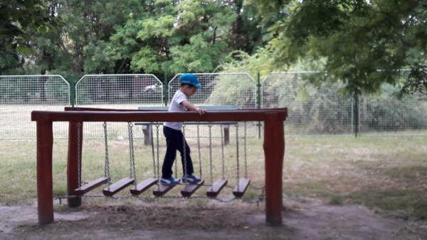 Itt pedig egy borongósabb délelőtt, azt hiszem szerdán, elbicikliztünk a közeli játszótérre,