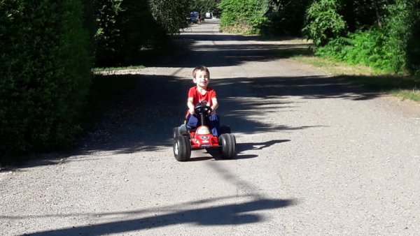 Pedig elővettük párszor tavasszal is, de amióta itthon vagyunk, azóta szinte minden nap kimegyünk a gokarttal “versenypályázni”, itt az utcasarkunktól nem messze 🙂 :