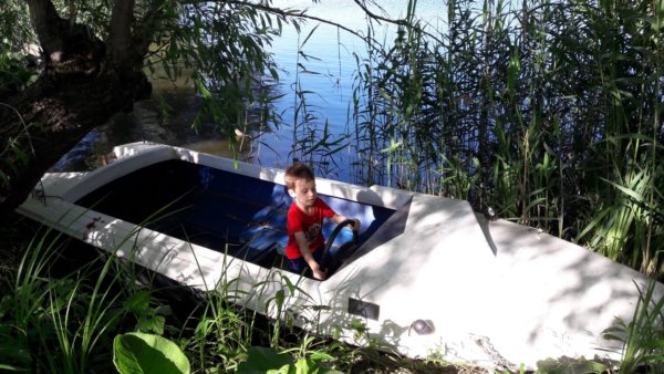 Ez egy új csónak itt a kis öblünknél és ráadásul könnyű belemászni 🙂 , remélem a gazdája sem veszi zokon, hogy néha Toma ebben “hajózik”, bár errefelé ezt nem szokták zokon venni, szerencsére 🙂 .