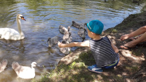 Nem volt nálunk semmi, csak maradék gofri a táskámban, Toma azzal etette a kicsi hattyúkat 🙂 :