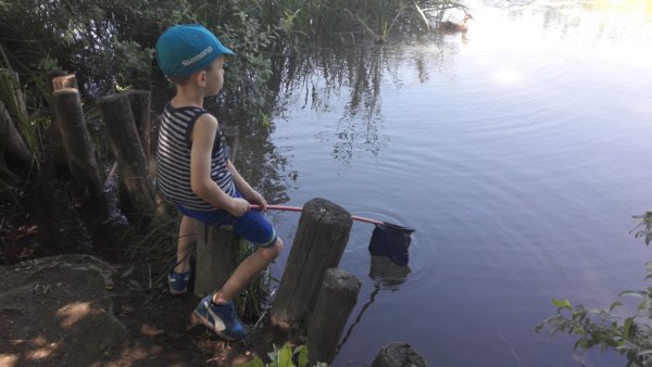 Aztán persze ki kellett próbálni a szákot itt is, főleg azért, mert emlékeztem, hogy tavaly ott egy kisfiú a nagypapájával, ugyanilyen hálóval fogott kis halakat, amiket akkor Toma is megcsodált, össze is haverkodott a kisfiúval. Először nem jártunk sikerrel, próbálkoztunk, próbálkoztunk, de semmit sem fogtunk.