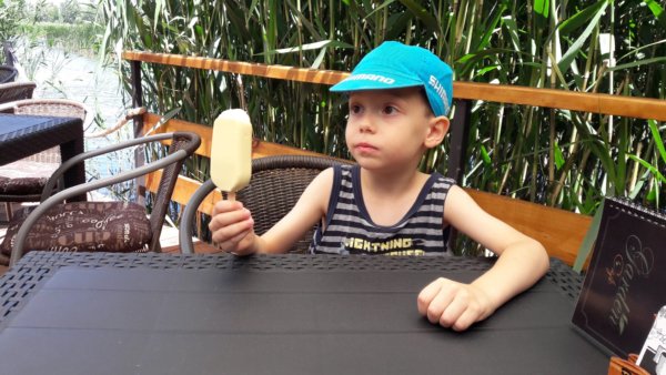 Nem így terveztük egyáltalán, de mivel ott van jelezve folyamatosan, hogy közel van az a kávézó, ahová már tavaly óta szeretnék eljutni, hát útba ejtettük. Már csak azért is, mert a bejáratnál fagyi fogadott minket, így aztán Toma megkapta a nyár tényleg első jégrémét (a mandulája miatt), mert az valahogy mostanában a kedvenc, én meg lattét rendeltem nagy bőszen 🙂 .