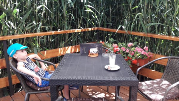 A kávézó tényleg meseszép, szinte a nádasban ültünk, jó kis szél fújt és olyan volt, ahogy susogott a sok nád, mintha a közepén ücsörögnénk tényleg, csak kényelmes körülmények között. Legkisebbünknek is nagyon tetszett a hely, pedig ő még ebben ugye nem érdekelt túlzottan, de többször elmondta, hogy itt milyen szép minden és de szuper helyre jöttünk! Itt pedig a nagy jólétben 🙂 :