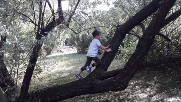 Úton hazafelé pedig rögtön a buszról leszállva játszótereztünk, aztán itt nálunk a Duna-parton volt kavicsba firkálás és faág dobálás, stégen bambulás, kövön láblógatás, futkározás, fára mászás, mert jobbnál jobb fákat talál mostanában magának Legkisebbünk 🙂 :
