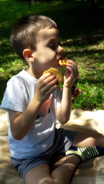 Régi vágya volt Tomának, hogy piknikezzünk:) . Hogy honnan jött neki az ötlet, azt nem tudom, de abba biztos vagyok, hogy télen, még a leghidegebb időben is piknikezni akart menni 🙂 … Majd elmúlt a tavasz is, de még mindig nem piknikeztünk, most nyáron aztán egyre sűrűbben lett emlegetve Toma részéről a dolog. Mivel kedden még egyedül voltunk napközben, gondoltam itt az idő a piknikre. Elővettem egy nagyobb vászon táskát, raktunk el dobozba kekszeket és gofrit, vittünk innivalót, csináltam magamnak a termoszpoharamba kávét, eltettük a Verdás kártyát, beraktuk a kockás plédet és mentünk is a Duna-partra.