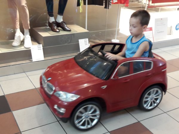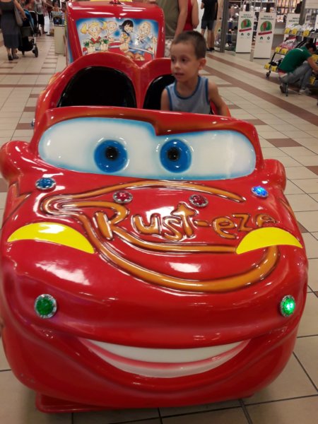 Úgy sikerült búcsút vennünk a helytől, hogy meglebegtettem a Mekit, ami hatott, így ott helyben ezt le is rendeztük, és mindketten már valóban nagyon éhesek voltunk. Aztán az autó felé haladva még megejtettünk egy elektromos autózást, ami már a belépéskor rimánkodás tárgya volt 🙂 ,