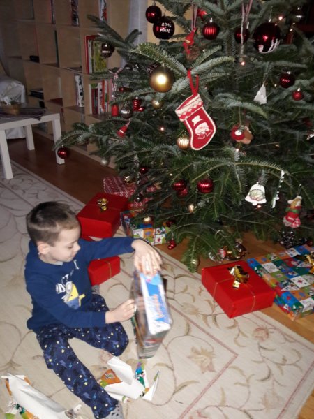 Reggel nem kímélt minket Toma, 7 óra után nem sokkal mindenkit felrázott, hogy ő már leosont a felső szintről és ébredjünk mert itt járt a Jézuska és itt a karácsony, zabálnivaló volt 🙂 ! Úgyhogy olyan fél 8 magasságában már javában az ajándékokat bontogattuk, és nagyon jó is volt, mert mindenkinek volt valami meglepetés, amire nem számított, de szerette volna és ez annyira jó tud lenni 🙂 !