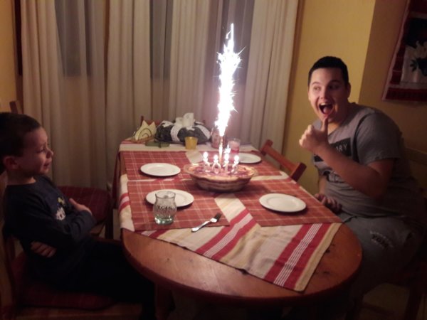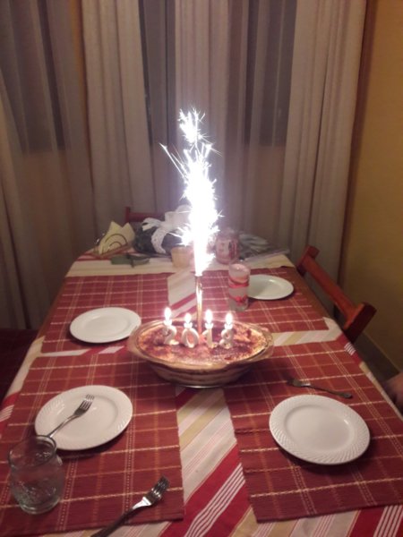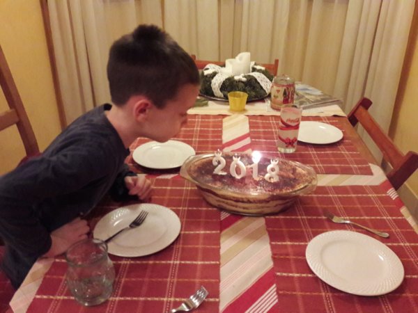 Aztán tegnap délutáni, amikor a már azt hiszem mondhatom így, hogy szokásos újév köszöntőnket gyakoroltuk, az év számgyertyáival egy tiramisuba beletűzve 🙂 :