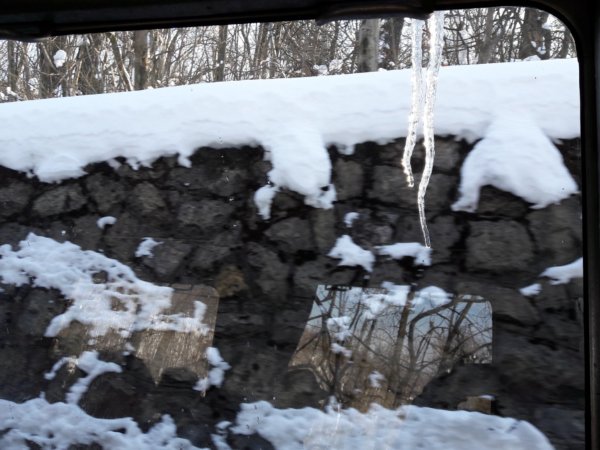 Egy jégcsap is elkísért minket az utunkon, ami pont az ablakunknál lógicsált,