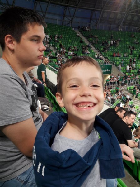 Aztán fél óra múlva már megint készülhettem, egy nap alatt rekordot döntöttem az átöltözésben 🙂 , mert Fradi meccsre indultunk természetesen, mint ahogy Dius írja, ha szombat, akkor meccsnap, és ez a fiúknál szent és sérthetetlen 🙂 !!! Még egyszer sem voltunk este Tomával, de gondoltam, hogy ezzel nem lesz gond, nem is volt, végig szurkolta az egészet, Mátéval együtt, mostanában a Családfő addig a VIP szektorban intézi a munkaügyeit (oda csak neki jut jegy, mert mindig tele van), jövő héten például ugyancsak VIP horgász versenyt rendez, meg azért a tanácsadói munkája miatt is van ilyenkor mit megbeszélni, szóval általában a meccs idejére elvan ezekkel és akkor közben még ugye szurkol is 🙂 . Amíg csak ketten jártak Mátéval, valahogy őt is mindig becsempészte, de most így megsokasodva ez már nem megy, őszintén szólva mi sem vágyunk rá túlzottan, így sokkal életszerűbb a kis VIP részen minden, a meccs és a szurkolás is! Már a kezdetek kezdetén komolyan hozzám intézve szavait Máté azt mondta, hogy ugye nem gondolom, hogy olvasni, netán telefonozni fogok 🙂 (az előző meccsen párszor elő vettem a telómat, bár megítélésem szerint igazán nem sokszor 🙂 ), szóval most csak és kifejezetten “szurkoltam” én is 🙂 , bár most nem is ment nehezen, ugyan a családi hozzáértők szerint nem volt ez valami eget rengető mérkőzés, de számomra már az első félidő is sokkal látványosabb volt, mint a múlt héten bármi, szóval most tényleg csak a meccsre figyeltem én is 🙂 ! Aztán volt látnivaló egyéb is, a szurkoló táborban, valami intézkedés is volt, azt is elnézegettem és a fiúk is velem együtt, szóval igazán nem unatkoztunk 🙂 ! Hazaérve már tényleg csak egy gyors zuhany jutott mindenkinek, a vacsorát elintéztük meccs közben 🙂 …