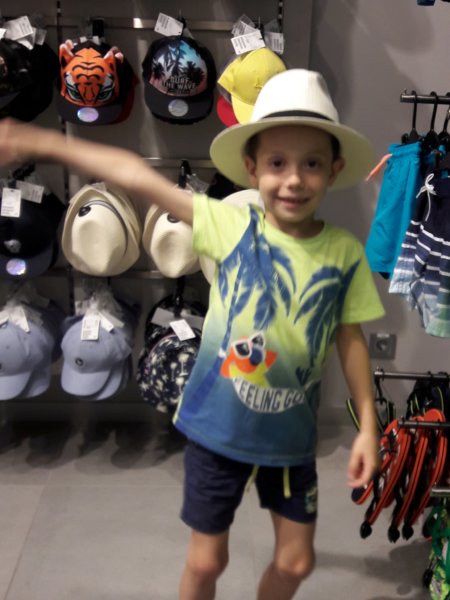 Aztán ha már a plaza közelében voltunk megvettük a ballagási ruhát is Tomának, sötétkék vékony nyári nadrágot fehér inggel és sötétkék fehér pöttyös nyakkendővel, nagyon csini lesz 🙂 ! Viszont a legszórakoztatóbb még mindig Tomával vásárolni a fiúk közül, én is nézelődhetek magamnak és még bohóckodni is van kedve közben 🙂 :