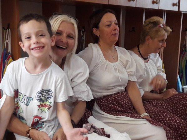 A ballagással mindig együtt jár a vásár, most sem volt ez másként, 10 óra tájékában kidobolta egy kisfiú a kezdést, mi pedig, mint máskor is és természetesen Toma részéről kihagyhatatlanul, mert nagyon szereti, vittük a kis kosárkánkat most már utoljára, és a standok között az udvaron, tele vásároltuk mindenféle jó dologgal 🙂 . Jöttek a zenészek, lehetett táncolni, de ezt mi most valahogy kihagytuk. pedig mindig szoktunk, de inkább beszélgettünk, ajándékoztunk, búcsúztunk… Toma sokat szaladgált és játszott kint a többiekkel, de nagyon meleg volt aznap tényleg, így amikor olyan 11 után már neki sem akaródzott visszamenni az udvarra, akkor elkezdtünk szedelőzködni, voltak akik már korábban elmentek, mi az utolsók között köszöntünk el a nagycsoportosok közül, ez is eltartott vagy 20 percig 🙂 . Először haza mentünk, ittunk a mamákkal egy gyors kávét, aztán a közeli csárdába vonultunk, ahová 12-re volt asztal foglalásunk. Megebédeltünk, miközben vártunk Toma jókat csúszdázott és hintázott más gyerekekkel az ottani, kertben lévő kis játszótéren. Utána nem időztünk sokáig, mint ahogy már írtam egyből indultunk Veszprémbe a keresztapámat látogatni, és egyúttal Kati mamát visszavinni.