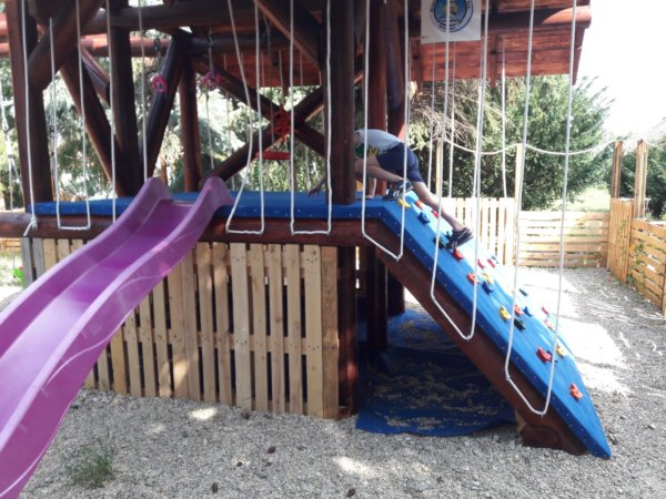 Ezentúl bent a jakuzzi működik majd, kint pedig lesz ez a másik, ami nekem külön öröm, mert ez ott kint az én szívem vágya is, szóval ha kész lesz, onnantól még hosszabodhat akár a nyaralásaink ideje és száma is 🙂 . Aztán a másik újításunk az volt, hogy elmentünk mindig reggelizni is (eddig a nagy házban erre soha nem volt idő, mert egyből pecáztak 🙂 ) és idén felépült egy kis játszótér is az étteremnél a gyerekek örömére, Toma is egyből használatba vette 🙂 :