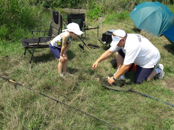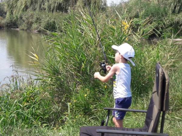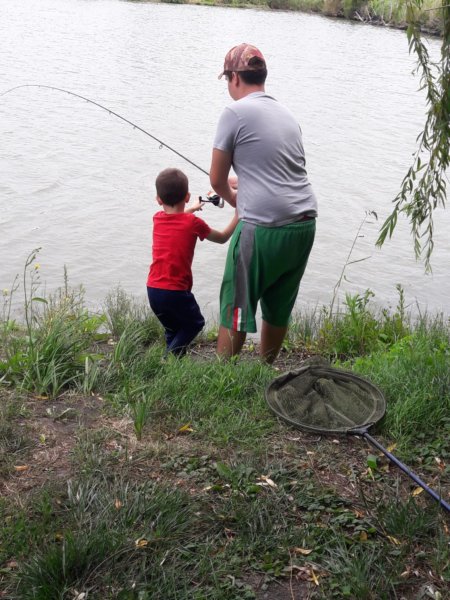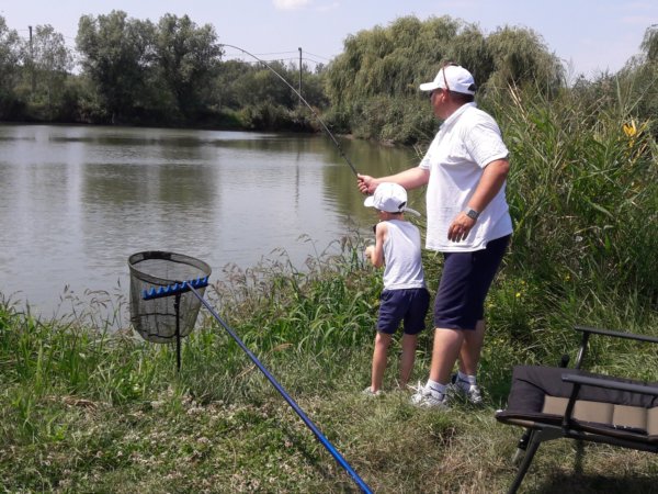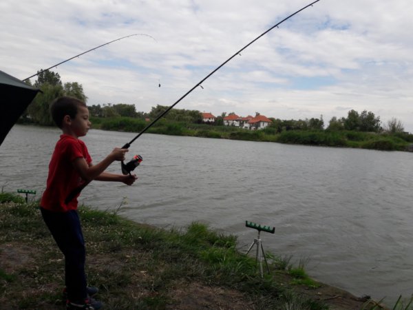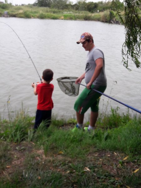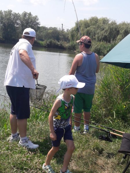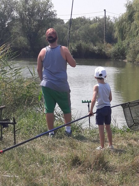Mondjuk a horgászat tényleg nagy élmény kicsinek és nagynak, ezen mindig el kell, hogy csodálkozzak, mert nem sok ilyesmivel találkozni, ami ennyire magával ragadja az összes fiút, életkortól függetlenül. Ezért a kedd, az egy olyan nap volt, amikor csak pecáztak a fiúk, bődült meleg volt, de ez nem zavart senkit, mint ahogy másnap a viharos szélben is fogták a botjaikat 🙂 … Azért kivonultunk a kedvenc tavunkhoz, oda a nagy ház partjára és ott telepedtünk le, volt közben persze többször kis környékbeli séta Tomával, ebédszállítás a részemről, de az a nap, a halaké volt, amit egyébként mindig egyből vissza is engednek 🙂 . Sokat fogott mindenki, főleg Toma, akit kicsit azért segített mindenki természetesen, hogy meglegyen a sikerélménye, hogy mindenkit lehagyott, de tényleg nagyon ügyes, és azokat a nem egyszer 8 kilós halakat úgy fárasztja, mint egy felnőtt. Sokszor nem is fogad el segítséget, de azért van amikor rákényszerül, akkor gyakran Máté is besegít neki 🙂 . Róla van mindig a több fotó, mert őt simán lehet fényképezni, Máté még mindig ritkán engedi meg 🙂 :