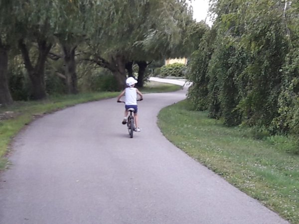 mentem volna én is, de ez az egy, a bicikli, amit ott nem lehet bérelni, jó lenne egy bringa szállító nekünk szerintem, ilyen alkalmakra. Toma bringás szenvedélyét úgy is csitítottuk, hogy mi a sok peca cuccot kocsival vittük át a tópartra, ő meg jött mellettünk biciklivel 🙂 … Ez az út egyébként pont olyan, mint nálunk az egyik itthon a Duna-parton, nem csodálom, hogy otthon-érzetem van néha 🙂 :
