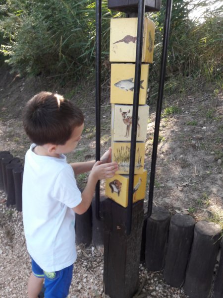 Nagyon gyerekbarát a hely, volt egy másik kirakó is előrébb az ösvényen, itt pedig az erdő, mező, nádas élővilágát lehetett kirakni, ha jól emlékszem, ha az egyik sor megvolt, kész lett a többi is 🙂 .