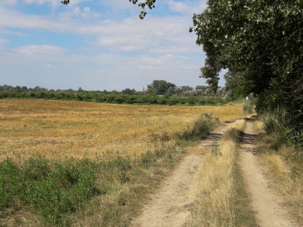 A tanösvény túloldalán szántóföld fut végig, ami egyébként nagyon szép és felfedeztem a GPS térképet nézegetve, hogy a lovarda mögött, a fedett pályától indulva, kb. 10 perces sétával el lehet érni a tanösvény másik, ellenkező végét…