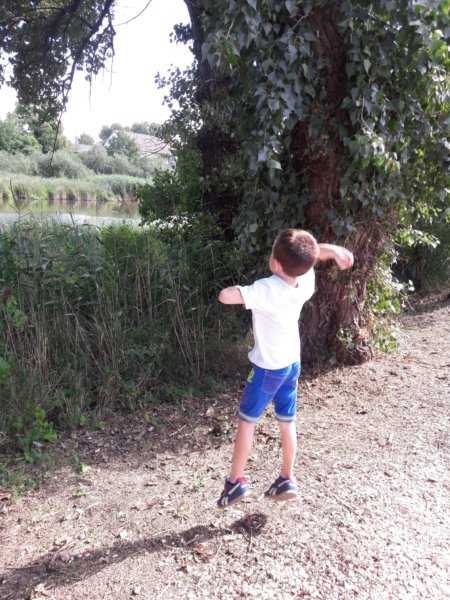 A kavics hajigálás nem maradhatott ki, ráadásul sikerült elkapnom a pillanatot, amikor lebeg a gyermekem 🙂 :