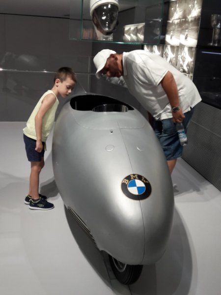 Ez is egy olyan hely volt Münchenben, ahová már tavaly, amikor az utazásunk először felmerült, tudtam, hogy el kell mennünk, ha ott vagyunk! Szerintem fiúkkal ez kihagyhatatlan program, de persze én is csak ámultam és bámultam és természetesen sok mindent elfogadtam volna onnan 🙂 … Mát maga a múzeum is hatalmas és több szintes, szerpentines részeken lehet lejutni az alsóbb szintekre, közben persze BMW csodákat bámulva 🙂 . Volt itt minden, motor, autó, versenyautó, a plafonról, kötélen lógó motorok, autó motorok, régi, antik kocsik és futurisztikusak is, szóval amit csak el tudunk képzelni. Mondanom sem kell az összes fiúnak bejött minden, de legjobban Tomának tetszett ez a múzeum 🙂 , azt mondta, hogy az Aréna és a meccs után – mert ebben minden fiú egyetértett, hogy az volt a csúcspont – neki ez volt a kedvence 🙂 !