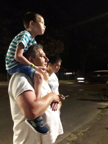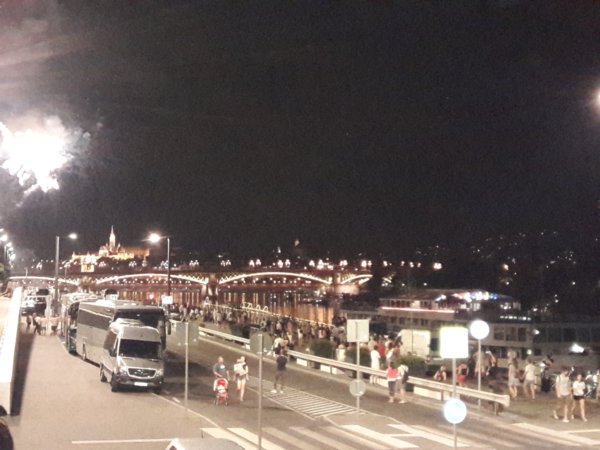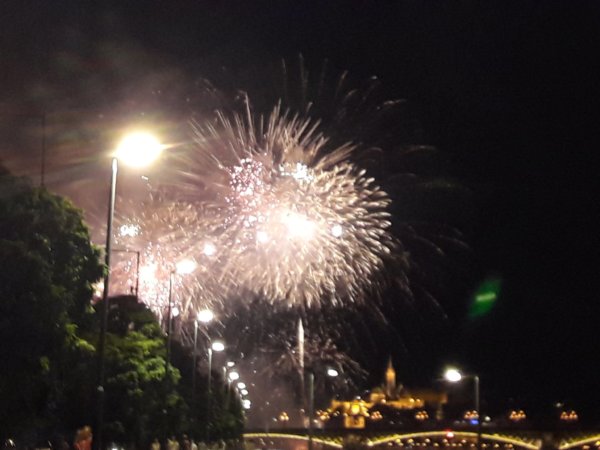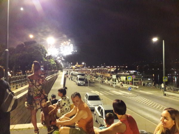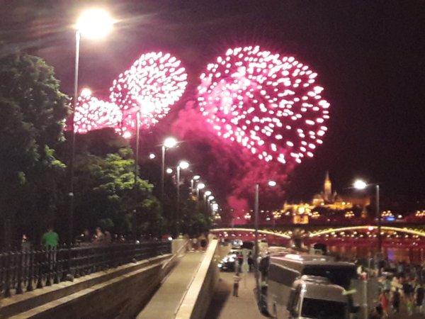 Az idei tűzijáték volt hosszú évek óta a legjobb nekünk! Na, nem éppen magára a tűzijátékra gondolok, mert azért az nem volt olyan kiemelkedő, szép volt, de láttunk már szebbet is – azt hiszem most már elmondhatom, hogy van összehasonlítási alapunk, Máté 2 éves korától járunk ki rendszeresen, csak akkor nem voltunk eddig, ha éppen esett az eső, de az talán 2-3 alkalommal lehetett – hanem a helyszín választásunk lett nagyon nyerő! Eddig mindig a MÜPA-hoz jártunk, láttuk elég jól, amit kellett, de már tavaly is azt hiszem a Lánchíd és a Margit-híd között és nem a Gellérthegyről lőtték a rakétákat, akkor sem volt már olyan élvezhető, így gondoltuk, most aztán már változtatnunk kell 🙂 ! Nagyon nem tudtuk hová menjünk, Apuci volt a fő irányító, ő sem tudta pontosan, de elindultunk és a munkahelye környéki rejtekutakon kötöttünk ki, végül a Szent István Park mögött parkoltunk le, ez megint csak az ő érdeme, ugyanis amilyen iszonyat kis helyekre be tudja ő tenni a kocsit, az már szinte művészet 🙂 ! Ezt a képességét nagyon irigylem tőle 🙂 … A Szent István Parktól meg leballagtunk a felső rakpartra és kellemes sétálgatások közepette lehorgonyoztunk a rakpart egy részén, ahol eléggé szellősen voltunk, nem volt nagy tömeg és teljesen jól láttunk. Már a helyszín is élvezetes volt, azt hiszem jövőre is oda megyünk 🙂 !