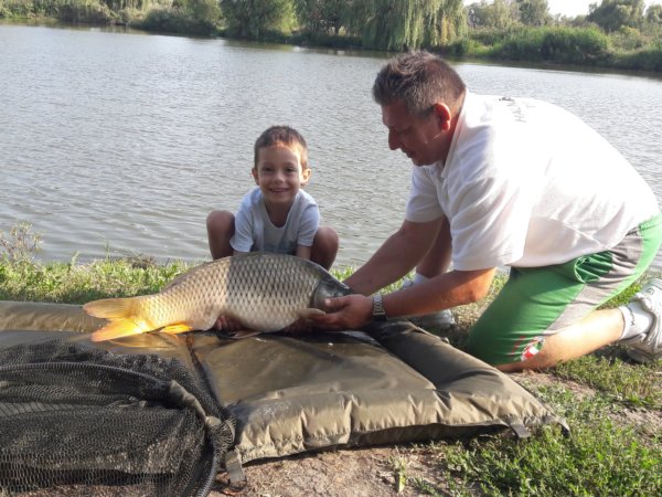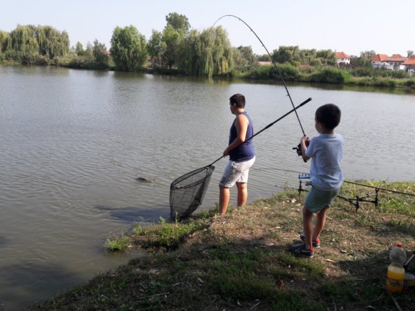 Vannak helyek, amiknek pozitív kisugárzásuk van szerintem, nekem ilyen Rétimajor! Egyszerűen hihetetlenül jól érzem ott magam és persze nem vagyok ezzel egyedül, nálunk mindenki imád ott lenni… Talán azért, mert nem lehet betelni a hely szépségével, nyugalmával, a rengeteg sok szép mindennel és azzal a mély megnyugvással, ami ott mindig rám tör! Most végre szabad volt a nagy ház, vártuk már, hogy ott lehessünk, nekünk az picit olyan, mintha valami nyaralóba mennénk vissza, szeretjük azt is! Kedden leérve mindenki fogta a pecabotját és persze estig horgászott, hogy aztán másnap felkelve ismét folytathassa mindezt 🙂 . Rengeteg sok és nagy halat is fogtak a fiúk, abban a két és fél napban, amikor is végig kánikulában élveztük a perceket ott, de a tavas panziónál, ahol lakunk mindig, az árnyas fák alatt ücsörögve, nem tűnt annyira megterhelőnek a dolog. Sajnos a kinti medence, ahogy számítottunk is rá, nem lett kész a második kis mini nyaralásunkra, idén már nem is készül el, de hát ez most már nekünk sem fontos, viszont jövőre azt ígérték meglesz, aminek már most örülök, mert konkrétan csak a fürdés hiányzott most nekem személy szerint, meg a két fiúnak is, Apuci azért meg lenne lubickolás nélkül is simán 🙂 … Szóval visszatérve, halakban nem volt hiány most sem, degeszre fogta magát mindenki, (még hazaindulás előtt is a pecabotot markolták):