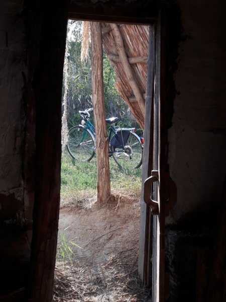 A kunyhóból a kölcsönkapott bringám 🙂 :