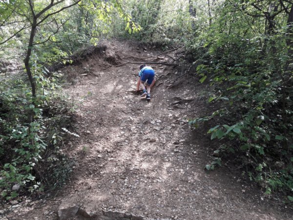 Alsóörsi nyaralásunk második napján reggel hatalmas vihar kerekedett, délelőtt nem volt strandidő, így inkább jöttünk-mentünk 🙂 . Már tavaly is, meg azelőtt is tervbe volt véve a balatonfüredi Lóczy-barlang – meg a tihanyi Barátlakások is, úgyhogy aznap pár régi tervet kipipálhattunk 🙂 – és mivel közel is voltunk, kb. 10 percnyire kocsival, gondoltuk, hogy most aztán megnézzük! Egyébként a Tamás hegyre kellett mennünk, így ez plusz öröm volt Tomának, hogy az “ő hegyén” van a barlang 🙂 … Amire odaértünk már elég meleg, fülledt, de borongós idő volt, így aztán kifejezetten jól esett bent lenni egy ideig a barlangban 🙂 . Mivel a barlangtúrára egy vezető van (mert persze csak így látogatható) és mindent ő intéz, amikor odaértünk, jó fél órát vártunk, mert éppen vezetés zajlott, de nem bántuk, addig Toma felfedezte a környéket 🙂 :