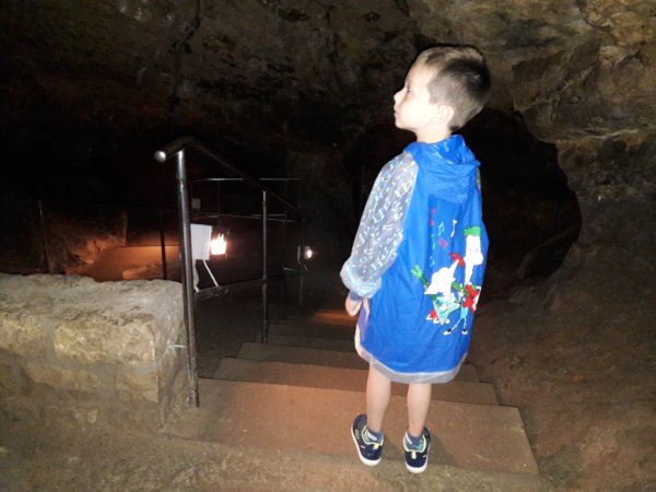 Mivel olyan 12 fok volt lent, vittünk magunkkal melegebb ruhát, már amit össze tudtunk szedni, mert egyébként alig volt nálunk ilyesmit, mivel éppen a kánikula tombolt 🙂 . Rajtunk csak egy vékony felső volt, Tomára szedett-vedetten ráadtam egy felsőt és az esőkabátját, mert az legalább nálunk volt 🙂 , de egyébként elég is volt, nem fázott senki. Szuper jó volt a barlangtúra, nagyon élveztük 🙂 !