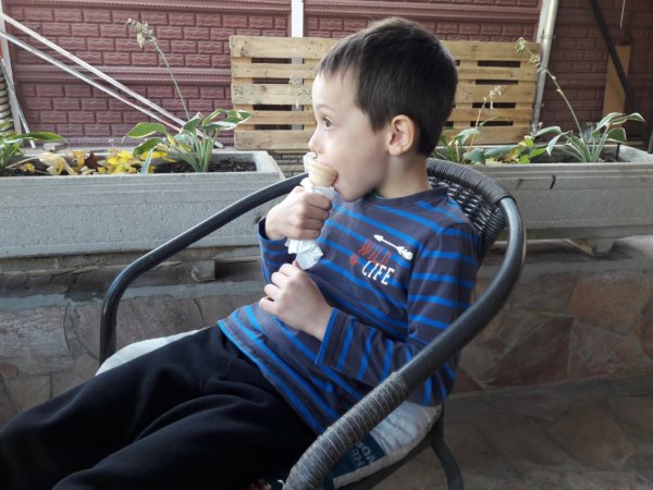 Azért ehhez képest ebéd után nem volt nehéz rávenni egy kis bringázásra, eltekertünk egészen a Duna-part végéig a cukrászdához, ahol is bevágtunk egy kis nyár előtti utolsó fagyit 🙂 ,