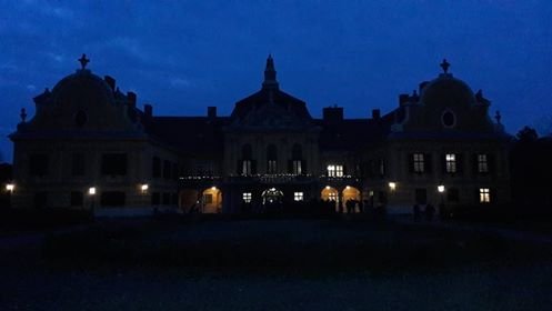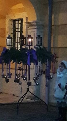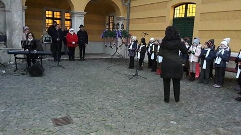 Aztán éppen azon voltam, hogy terelődjünk a kastély kávézója felé, amikor feltűnt, hogy zsongás támadt a bejáratnál, mindenki kifelé igyekezett és mint megtudtuk, az első, ünnepélyes adventi gyertyagyújtásra készülődtek kint a kertben. Gondoltuk, ha már ott vagyunk, ezt ki nem hagyjuk, így aztán mi is csatlakoztunk a sokasághoz. Gyereksereg izgatott készülődését láthattuk, mert ők énekeltek és harangjátékoztak zongorakísérettel, aztán a kastély igazgatójának a beszéde után felgyulladt az első gyertyaláng is a lámpásban. Annak ellenére, hogy mindannyian átfagytunk az előadás végére, az egész valahogy nagyon emlékezetes maradt, csak ott álltunk és hallgattuk azt a sok szépséget, a gyerekek vidám énekét és igazi varázslat költözött akkor oda közénk…
