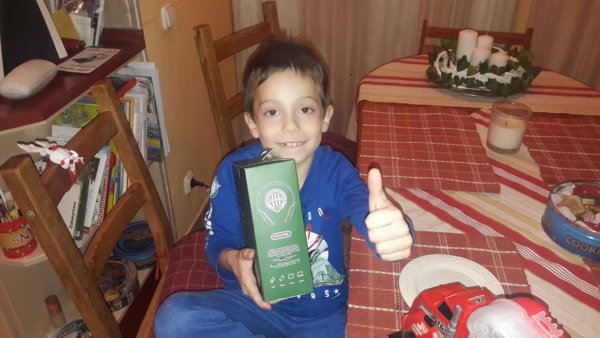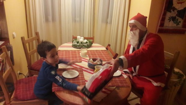 Mindenkit, tényleg mindenkit elárasztott ajándékkal, Máté is azt kapta, amire vágyott: vezeték nélküli fülhallgatót, Toma pedig levehető és szerelhető kamiont kerekekkel és minden szerszámmal és egy Fradis fülhallgatót, ami nem vezetékes, de ez az érintettet ez egyáltalán nem érdekli, örül neki nagyon, és persze megvendégeltük most is a Mikulást, ivott a viharosan készült forró csokiból is és még útravalóként mézeskalácsot is csomagoltunk neki: