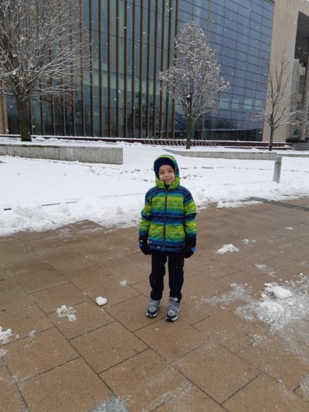 Már amennyire tőlünk telt, mert Toma ugye beteg lett csütörtökre, tüsszögött, folyt az orra rendesen és egy kis hőemelkedése volt. Kúráltuk, jobban is lett már szombatra, aminek nagyon örültem, mert aznap ugye munkanap lett volna iskolával, de mivel már két héttel korábban megígértem Tomának, hogy nem megy suliba, Kolompos jegyet vettem hozott az Angyalka aznap reggel, ami már megvolt persze csütörtök előtt is 🙂 , szóval jó volt ez így nagyon, hogy helyrejött. A Müpa sátorhoz mentünk, de Toma már napok óta a havazást várta, figyelte a telefonunkon az időjárás előrejelzést – ez a gyengéje, olyat néz, ami napszakra lebontja, sőt, még a távolabbi országokat is figyeli, még a végén nem futó, hanem meteorológus lesz 🙂 – reggel pedig mindent vitt a jókedve, amikor meglátta a havazást 🙂 !