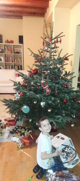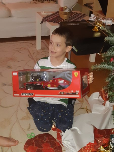 Na, de a lényeg, hogy lett félbevágott fánk, ami így is nagyon szép, olyan jó dús, terebélyes, Toma jó későn aludni ment, mi hármasban díszítettünk, bár Máté megjegyezte, hogy amikor ő volt pici és neki csináltuk ezt az egészet, el nem tudja képzelni, hogy végeztünk mindezzel kettesben, egyébként most már én sem tudom, de valahogy csak sikerült akkor is 🙂 … Reggel aztán nagy volt az öröm, mindenki részéről, lett meglepetés mindenkinek, ha csak kicsi akkor is, Máté telefont kapott, amit azért sejtett, de mellé lett egy üveggel egy nemrég megtetszett parfümből is, Toma rengeteg sok mindent kapott, mert nem keveset kért 🙂 , lett távirányítós Ferrari versenyautója, mint Vettelnek 🙂 , aztán távirányítós hatalmas Transzformeres robot, aki távirányítva változik át és ami tulajdonképpen meglepetés volt neki, mert nem szerepelt a listán 🙂 , kapott könyvet, társast (Scrabble Junior), számszüretes kártyát, mert ezek nélkül nekem elképzelhetetlen a karácsony, könyv és társas elengedhetetlen szerintem 🙂 , de aminek a legjobban örült, a Böde Danis Fradi mez, ami azóta is rajta van 🙂 és egy Fradis focilabda, ami mind a listáján volt egyébként…