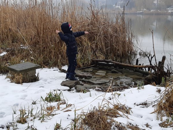 Mint írtam már talán, a kiserdős kis túráink valahogy sokkal ritkábbak, főleg így télvíz idején, mint egyébként jogos lenne, mert, hogy jobbra fordulunk vagy balra az utcánkból kiérve, tulajdonképpen mindegy lenne 🙂 … Általában balra megyünk és kb. ugyanannyi, rövid max. 10 perces gyaloglással – ha fűt-fát-nádszálat megvizsgálunk – jutunk el a kiserdőhöz, mint balra a Duna szakaszunk végére. Talán annyi lehet, hogy balra a Duna mellett megyünk, jobbra pedig főleg a nádas mellett haladunk és érünk el a kiserdőhöz, de ott is lefut pár ösvény a Dunához, szóval ez sem indok, de hát mindegy is, csak én morfondírozom mostanában, hogy mi ennek az oka, a lényeg, hogy ritkábban megyünk, mint szeretnénk. Hétfőn viszont mentünk, hazaérve a laborból, ahol leadtuk amit le kellett, nekiindultunk és hát éppen havazott, úgyhogy örültünk is, mert ilyenkor meg olyan ritkán járunk arra, mint a fehér holló 🙂 … Nagyon kitúráztuk magunkat, közben persze a kavicsdobálás és hócsata sem maradt el, ez utóbbi olyan jól sikerült, hogy szinte ázottan értünk haza, de megérte 🙂 :