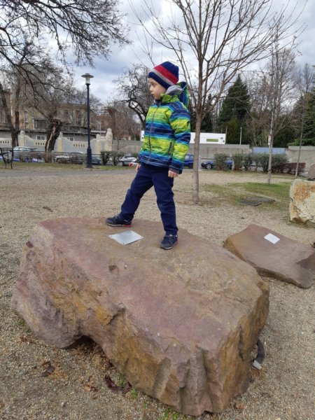 Pénteken jártunk ott hármasban Tomával és a Családfővel, ráadásul teljesen ingyen, mivel ünnepnap volt, ugye a múzeumok ingyenesen voltak, így éltünk a lehetőséggel. Már régóta terveztem, hogy megnézzük, mert gondoltam, hogy Tomának tetszeni fog, amiben nem is csalódtunk, több minden volt, ami nagyon bejött ott neki 🙂 . Az egész hely nagyon gyerekbarát, egyszer, még ugyan évekkel ezelőtt az év múzeuma is volt, mert sok mindent ki lehet próbálni, meg lehet fogni és egyáltalán az egész nagyon a gyerkőcökre van szabva! Toma még a bejárat előtt elakadt az időösvénynél, ami földtörténeti időrendi sorrendbe állítja a kőzeteket. Szerintem Legkisebbünknek ez volt az egyik kedvence az egészből, mert nem elég, hogy az összes követ megmászta, nagyon tetszett neki, amiket olvasgattunk a kövek “életkoráról”, ugyanis általában 200-300 millió év között voltak 🙂 , ami hát ugyancsak nem hétköznapi jelenség 🙂 .