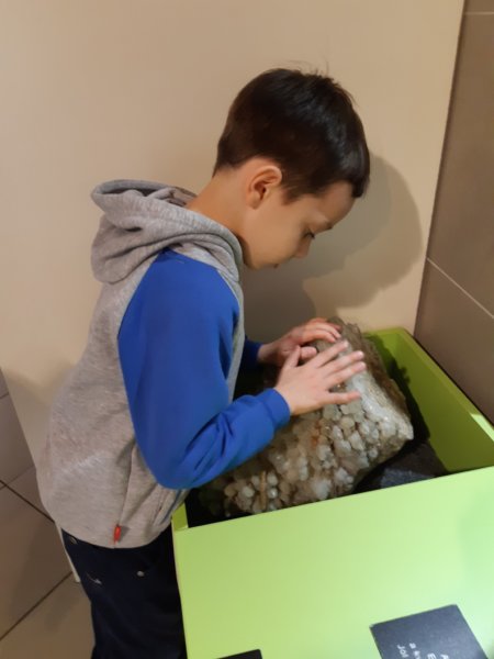Azért amikor tényleg nagy nehezen elszakadtunk a kőzetektől, bent is nagyon sok érdekes és kedvenc dolog jött szembe Tomával, például meglepő módon az ásványokat nagyon érdekesnek találta, nem gondoltam, hogy pont ez lesz az, ami különösen érdekelni fogja, de ott is sok mindent megnéztünk és meg is tapogattunk persze 🙂 . Az nagyon érdekes volt neki is, hogy például elég sok kőzet vagy ásvány alapanyaga a tisztítószereknek vagy mondjuk a hasmenés elleni pornak…