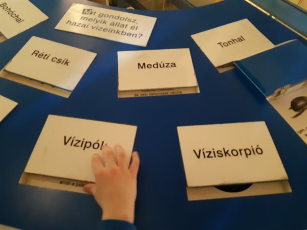 és volt ott egy tök jó kis asztal, aminél ki kellett találni, hogy melyik élőlények élnek hazai vizeinkben és egy kis fület lehetett felhajtani, ami alatt pár sorban bemutatták az állatot. Tomának ez nagyon bejött, mindegyiket felhajtotta és saját maga elolvasta az ismertetőket, olyan kis cuki volt 🙂 !