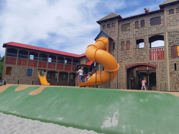 Az egész hely szuper, egy várkastély a központi rész, ahonnan csúszdákkal lehet lejutni,