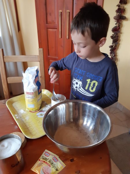 Szóval mindent Toma csinált, kevert, kavart, kimért, megette a fél csokit, a tördelésnél ezért én is segítettem (enni is, ja nem, csak egy picit, mert fogyózom 🙂 …).