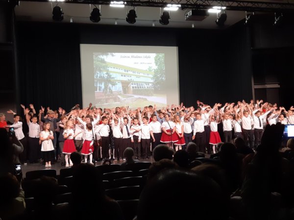 A Gála egyébként szerintem nagyon színvonalas volt, rengeteg munka volt benne, mindenféle műsorszámok előfordultak: egyéni szavalások, osztályműsor, csoportos versenyszámok, néptánc, osztályműsor Örkény darabjából a Tótékból (ezen annyit nevettünk, az egyik fiú szerintem vérbeli színész), egyéni táncok is előfordultak, Tomáék ugye osztálytánccal léptek fel, volt aki hangszeren játszott, csoportosan furulyáztak, de egy kisfiú egyedül zongorázott például és még az énekkar is fellépet, szóval tényleg tartalmas, színes, változatos volt az egész!