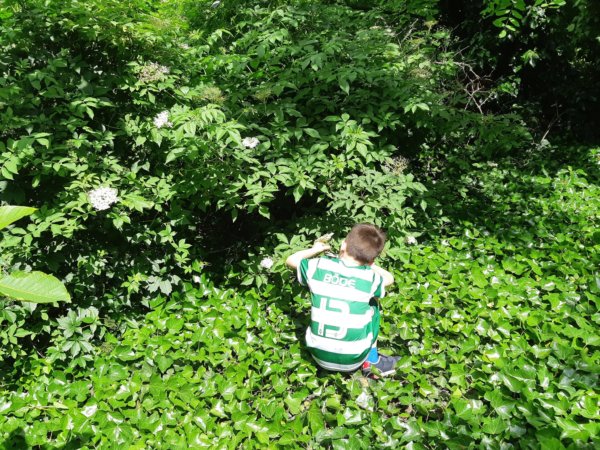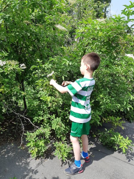én meg megcsináltam a karamellt, mert fél kg cukorból készítem hozzá, az ízében is kap egy kis pluszt, a színe pedig csodaszép tőle! Aztán ebéd után kimentünk ide a környékre bodzát szedni vagy inkább vadászni, mert szinte azt kellett, de találtunk, a Duna-parton és egy közeli üres telken. Máté is jött velünk, mert a magasból csak ő tudta leszedni amit lehetett (fotókon nem érdemes keresni, őt már nem lehet fényképezni 🙂 …).