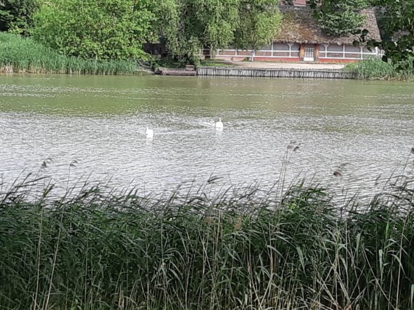 Nem látszik annyira sajnos, de itt a hattyú család úszkál a kis csemetéikkel 🙂 …