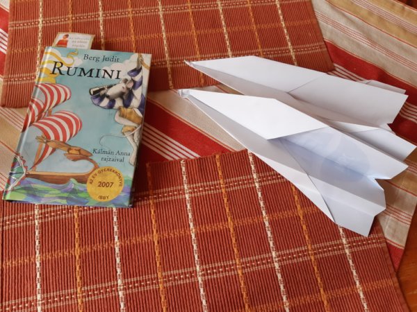 Azért itthon is játszunk, a holtidőkben kártyázunk, meg lezavarunk egy-egy társast, bár Mátéval a monopoly még várat magára, mert az nagyon hosszadalmas és eddig még valahogy soha nem lett érkezésünk rá, de azért remélem valamikor csak összejön, meg esetleg jut eszembe Rétimajorba levisszük magunkkal, mert talán ott igazi idő is jut rá. Tomával elkezdtük olvasni a Ruminit, ami persze tök jó, közben azért a pólórajzoláson kívül egy-két papírrepülőt is hajtogatunk, erről a csendéletről még fotóm is van, ami talán hétvégi azt hiszem, reggel az étkező asztalon felejtett pillanat és olyan jellemző volt, hogy le kellett fényképeznem 🙂 :