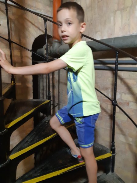 Utána indultunk a kilátóhoz, ahová végül eldöntöttünk, hogy lépcsőn megyünk fel, bár lehetett volna liftezni is, de kihagytuk. Nem volt az a nagyon meleg idő, de még így is jól kimelegedtünk, amire felértünk, ha jól emlékszem valahol olvastam, hogy több mint 300 lépcső vezet felfelé: