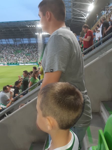 Végül a veszprémi mekiben csillapítottuk az éhségünket és még bőven időben voltunk, fél 5 körül már Pest felé robogtunk, a meccs pedig 8-kor kezdődött, gondoltuk, hogy majd milyen korán ott leszünk… Hát, nem lettünk, ugyanis beérve az Egér úttól olyan jó másfél órát araszoltunk a dugóban, az aréna körül is iszonyú forgalom volt, olyan háromnegyed 8 körül ott voltunk a helyünkön azért, de hát na… A meccs pedig, hát, csak azt tudom mondani, hogy a hangulat szédületes volt, az eredmény pedig, hogy 4-0-ra kikapott a Fradi, legfőképp Tomát vágta mellbe, rosszul viselte nagyon a vereséget és a második gól után már vissza akart indulni Alsóörsre…