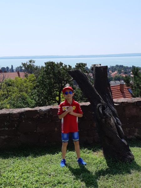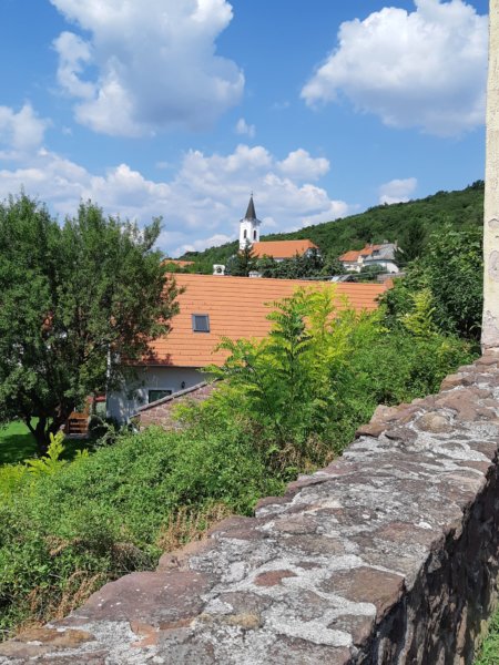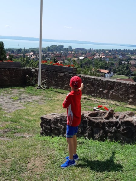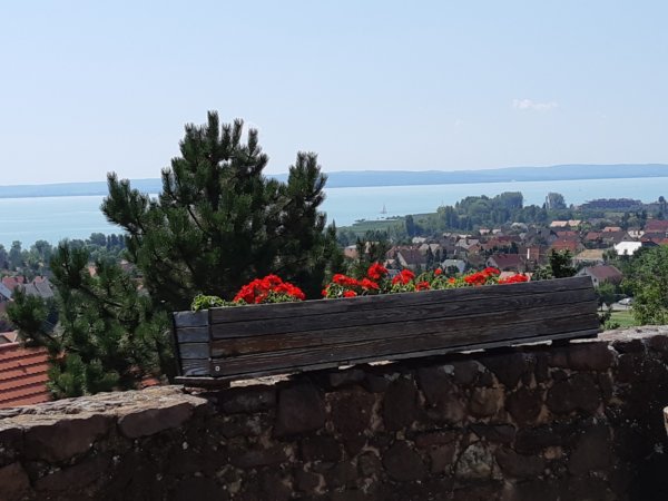 Azért a nyaralásunk utolsó teljes napján, már kicsit eluntuk Tomával a reggeli várakozást Mátéra (a Családfő nem, ő jól elvolt ezzel a felállással 🙂 ) és gondoltam amire felkel és összeszedi magát, mi addig bőven bejárjuk a környéket. Már tavaly is meg szerettem volna nézni ezt a házat, de akkor annyira kevés időre mentünk, hogy a közeli Merse-park mellett, nem sok idő maradt körbenézni Alsóörsön. Így kicsit melegben ugyan, de felsétáltunk azon az utcán, ahol laktunk és egy icipici kacskaringóval máris a Török-házhoz érkeztünk. Már az utcák is nagyon szépek, amik odavezetnek, de maga a ház és a kertje szerintem gyönyörű, felér egy kisebb kilátóval is a panoráma onnan 🙂 :