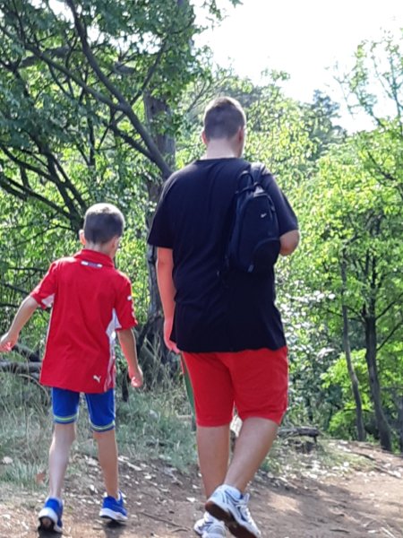 A kocsival feljutás és a viszonylagos rövidség stimmelt, viszont az emelkedő, hát, hogy is mondjam, nem picit emelkedett, hanem nagyon, mondhatjuk, hogy függőlegesen mentünk felfelé 🙂 … Hogy én mit hallgattam a fiúktól útközben azt inkább hagyjuk, mondjuk szinte mindenkinek lógott a nyelve, amire felértünk 🙂 . Megfigyeltem, hogy kedves családom nem áll meg pihenni, ha kimerítő útvonalon van, hiába mondom, hogy kéne mert úgy csak könnyebb, szerintem előbb meg akarják úszni az egészet, ezért hajtanak, nem állnak le, amíg oda nem érünk, viszont a kilátás mindenért kárpótolt, még Máté is megbocsátotta az egész utat 🙂 :